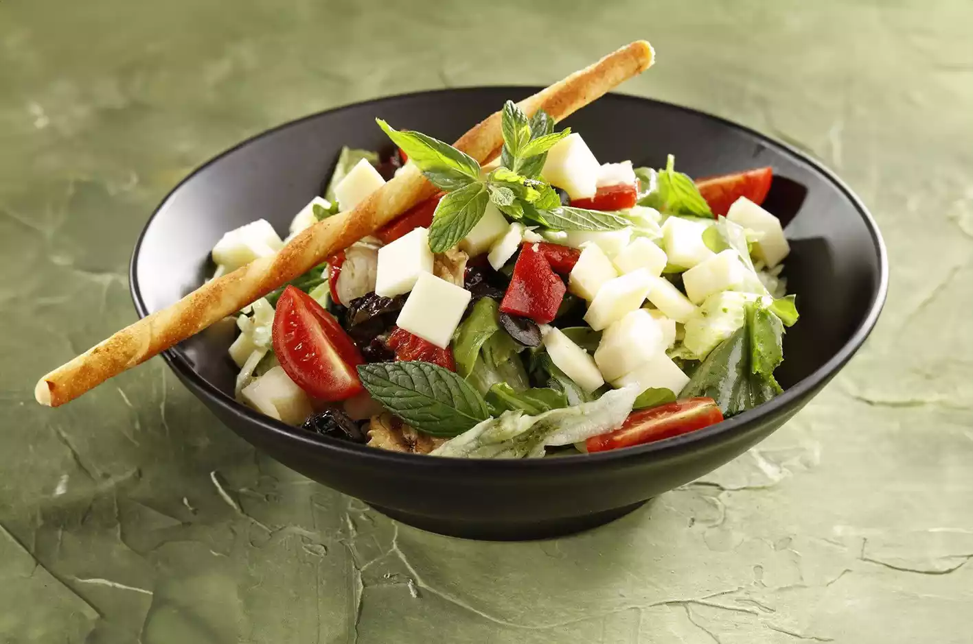 Mevsim yeşilliklerini taptaze şekilde hazırlayıp, özel salata sosu ile soslayıp üzerinde top peynir ile servis ediyoruz.