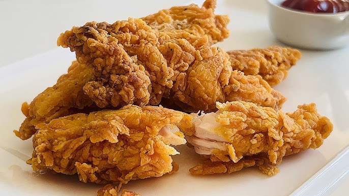 Patates kızartması üzerinde taze hazırladığımız bol tenders parçalarını servis ediyoruz.