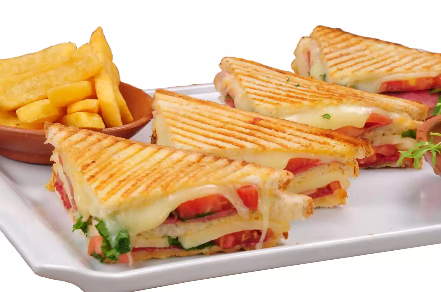 YARIM SOMUN EKMEĞİ , GERÇEK KAŞAR PEYNİRİ , DOMATES , BİBER-Patates kızartması ile servis edilir.
