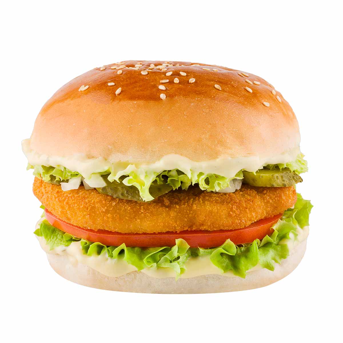 HAMBURGER EKMEĞİ ,ŞİNİTZEL , DOMATES, MARUL-Patates kızartması ile servis edilir.
